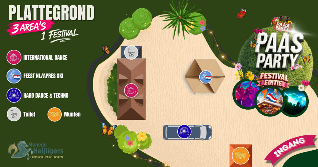 Tijdens het gehele Paasparty weekend kun je alleen betalen met consumptiemunten. Het is niet mogelijk om eten & drinken met cash of pin te betalen. Er zijn voldoende kassapunten aanwezig waarbij je consumptiemunten kunt kopen met cash of pin (Maestro)